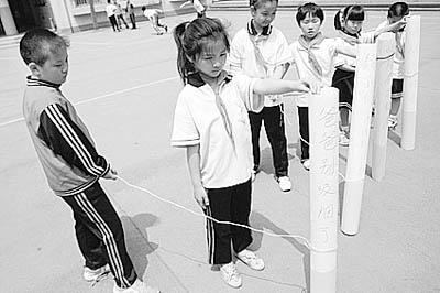 5月31日,濟南市小辛莊小學的學生表演自編的校園情景劇宣傳戒煙。崔健攝(資料圖片)