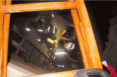 香山消防中隊消防員到場后,在塌陷坑上方搭建安全支架。幾名消防員下到坑底,為楊先生系好安全繩索,其中一人還脫下衣服為赤膊的楊先生披上,隨后順利將其拉到地面。已等在一旁的120急救人員迅速將楊先生送往醫院。