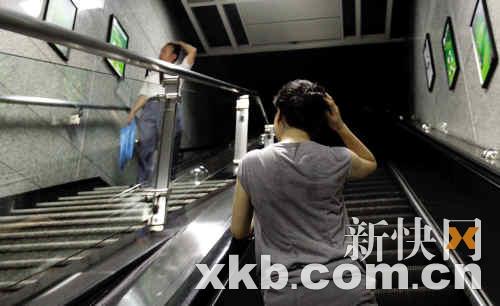昨晚,小英只身從地鐵華師站E出口出站。新快報(bào)記者 寧彪/攝