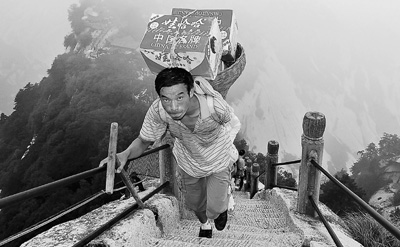 幾度謀生失敗后,他北上華山開始背夫生涯