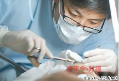 醫(yī)生在取小賢賢的角膜