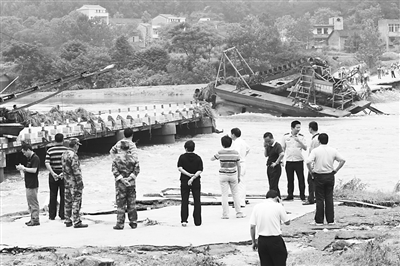 撞橋時正值暴雨河水猛漲 百米大橋撞開30多米口子