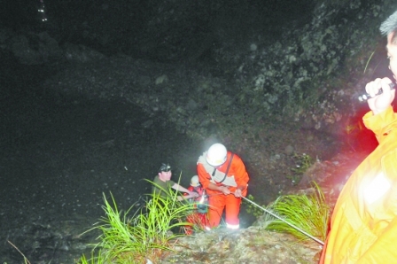 經過多次努力,終于有個手機可以通話了,大家打通了110:“救救我們,我們一個隊員被沖下瀑布了!我們被洪水困住了,不知道怎么走。”