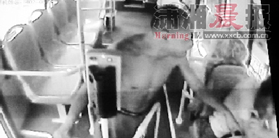 視頻錄像顯示,17日下午1時18分,402路公交84號車駕駛員胡紅旗駕車至南門口站,在上下客后準備出站時,一個上身赤裸的男子將所騎電動車放在路邊,然后上車后開始對駕駛員謾罵、毆打。