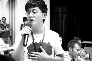 在加拿大留學的四川籍年輕人冉洪瑞利用假期回國,與老鄉組團來參加培訓,這是他在會上發表自己的觀點。