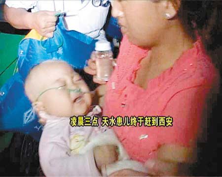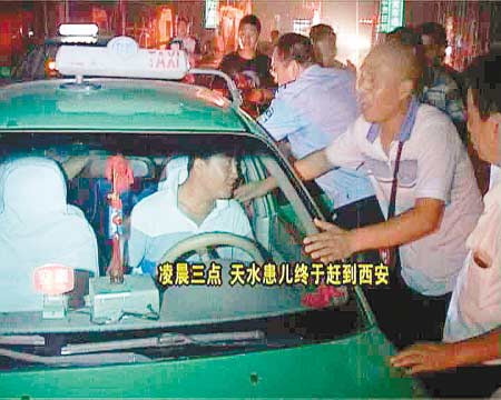 陜西電視臺FM99.9調頻廣播熱線接到一名來自甘肅天水的出租車司機鄭師傅的求助電話,他說自己車上拉了一名八九個月大的重癥嬰兒晶晶,由天水轉往西安西京醫院急救,因為途經西寶高速路蔡家坡段發生車禍嚴重堵車,晶晶氧氣眼看就要用完,而且孩子出現高燒、抽搐等癥狀,情況比較緊急。