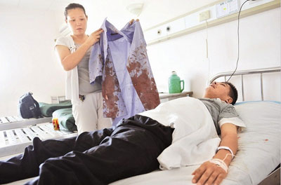 “我現在非常難受,頭很暈,鼻子感覺很不透氣。”卓師傅說完,守護在一旁的妻子拿出他當時穿的藍色制服,整件衣服上都是血跡。據主治醫生透露,卓師傅身上多處皮膚表面創傷及軟組織挫傷,需要住院進一步檢查和觀察才能確定傷勢。