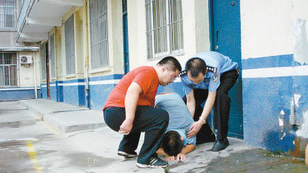 幼兒園園長(zhǎng)兼司機(jī)朱雷剛走出羈押室,“撲通”一聲跪下,向涵涵和她的父母懺悔。記者王濤 實(shí)習(xí)生盧夢(mèng)純 攝