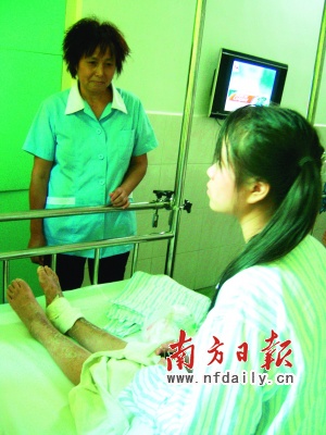 她被工友送到東莞市人民醫(yī)院搶救,因傷勢(shì)太重,又轉(zhuǎn)到廣州軍區(qū)廣州總醫(yī)院。經(jīng)診斷,她的兩節(jié)腰椎爆裂性骨折并不完全性截癱,一節(jié)胸椎壓縮性骨折,雙腳踝粉碎性骨折,必須盡快接受手術(shù)。