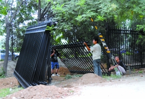 昨日,昌平區史各莊村,村口、沿街正在安裝鐵柵欄。記者 楊杰 攝
