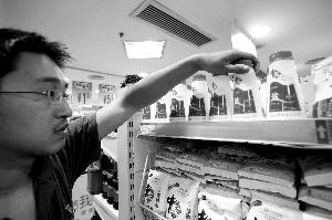 昨天,崇文門新世界商場地下超市里,已經擺上了一排白底藍蓋的瓶裝“無碘精制鹽”,售價為2.4元,不過市民似乎對其沒有太多注意,買的人并不多。