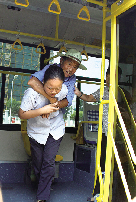 陳葉常常背行動(dòng)不便的乘客上下車(圖片來(lái)源:寧波日?qǐng)?bào))
