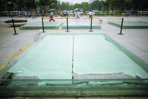 昨日,奧林匹克公園,一塊玻璃制的景觀已經(jīng)破裂 記者 浦峰 攝