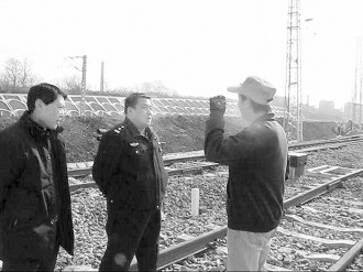 陶國(guó)華(中)在國(guó)家重點(diǎn)工程工地巡查、調(diào)研治安情況。