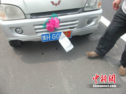 26日上午11時許,河南高速總隊黃河二橋大隊執勤民警巡邏到京港澳高速628公里東半幅時,看到一輛面包車(豫HG0***)從原陽收費站緩緩駛入高速,車上披紅掛綠:車前掛著大紅花,車兩旁反光鏡上系著紅飄帶,車牌上貼著“百年好合”,一副新婚嫁娶的樣子,民警示意該車靠邊停車,一看車上坐的都是外出打工的人,大包小包拉了一車,不像是婚嫁車輛啊。在民警的詢問下,車上乘坐人員才道出了事情真相:原來車上的乘客要到鄭州打工,正好幾個人聚到一塊,一商量決定從原陽老家包輛面包車直達鄭州。面包車司機吳某接了這趟活兒,吳某為了快去快回在高速不被電子眼抓拍,就在車前、車牌、車輛的反光鏡上披紅掛綠假冒婚車。結果沒想到,剛上高速就被抓了個正著。交警依法對其故意遮擋號牌的違法行為,罰款200元,記6分。(記者 胡影 通訊員 楊軍政)