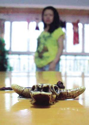 楊女士家住大渡口,昨天是她37歲生日,中午,老公李先生拿出了個牛頭掛飾,這個精致卻又古樸的牛頭上,兩個牛角非常顯眼。