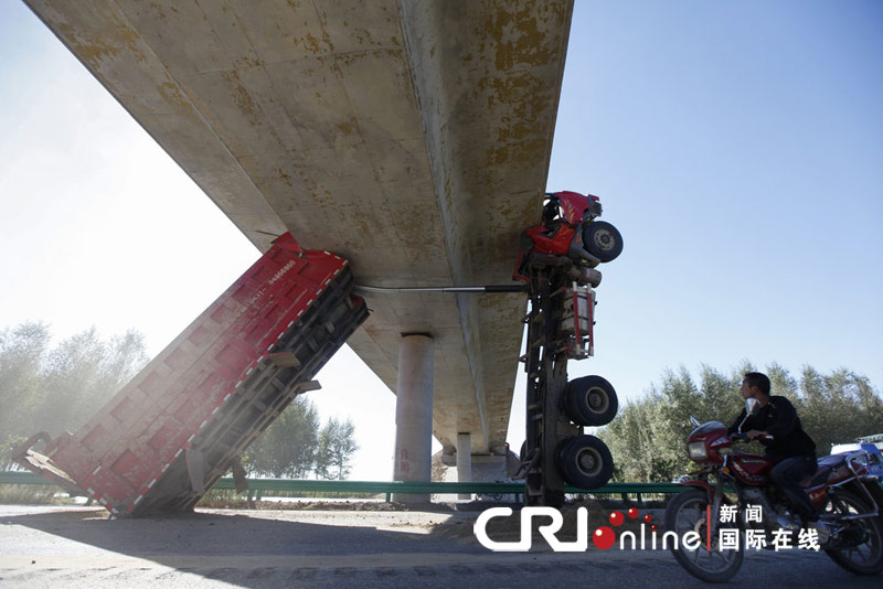 2010年9月8日8時40分許,一輛翻斗貨車行駛到長春農安縣哈拉海鎮頭道溝村302國道一過道天橋處時,翻斗貨廂彈起后,被天橋攔住,車身前沖立起,駕駛室棚頂重重地撞上了橋的北側,被撞得嚴重變形。