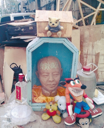 在沈陽華山路和長江街路口附近,有一條不起眼兒的小巷。在巷子里有一個白色的電話亭,從外面看,這個電話亭和其他電話亭并無二致,一樣的裝飾,一樣賣著香煙和飲料。不過,電話亭里面卻有一個很不一般的“物件兒”:一尊用黃泥捏成的人頭塑像。幾天前,記者親眼目睹了這尊塑像的風采,應該說,泥像捏得非常傳神,在寬寬的額頭上還有4個字,表明了它的特別之處:行政執法。