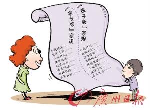 記者發現,給孩子遵守的“孩子版”家規和不少家庭的規矩大同小異,但“家長版”家規要求則和“孩子版”相映成趣,非常有創意。比如“孩子版”規定早上起床不遲于6:30,晚上睡覺不遲于21:00,每天要盡量在學校完成作業;而“家長版”則規定爸爸媽媽要在兒子起床前準備好早餐,爸爸要督促幫助兒子起床及睡覺。21:00前主要關注兒子學習及閱讀情況,每天盡量在單位完成工作。