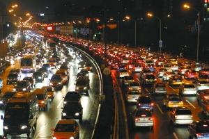 市區從前天晚上開始普遍降雨并持續到昨天白天。因降雨一直持續,道路擁堵情況未見好轉。昨日晚高峰提前約一個小時出現,高峰峰值時段全市擁堵道路超過140條。據了解,2008年北京開始實行限行措施初期效果明顯,即使在機動車高速增長的壓力下,晚高峰擁堵路段均沒有超過100條。