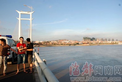 犯罪嫌疑人在晉江大橋拋尸地點(diǎn)指認(rèn)現(xiàn)場(chǎng)。(圖片來源:東南網(wǎng))