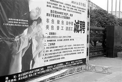 圖為溫州各大小企業(yè)門口現(xiàn)在已開始擺出大型招工牌