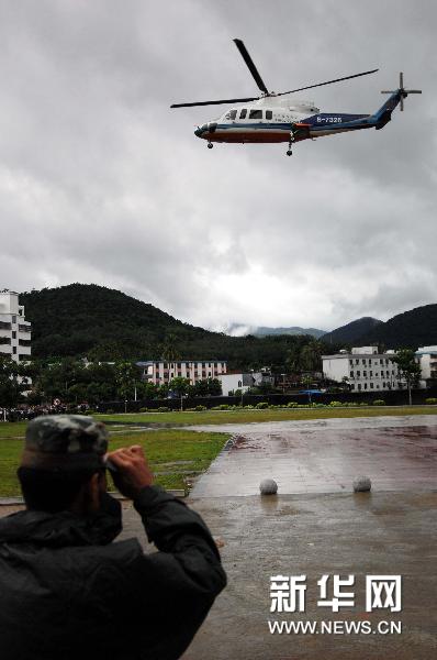 海南陵水吊羅山發生山體滑坡,10月3日15時59分,直升機起飛前往事發現場進行救援。 新華社記者侯建森攝