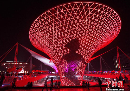 10月5日,上海世博會(huì)入園人數(shù)持續(xù)上升,超過(guò)43萬(wàn)人次;入夜后風(fēng)清氣爽,巨大的彩燈塔為游人展示絢麗多彩的畫面。中新社記者 任晨鳴 攝