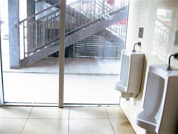 家住漢口的魯先生介紹,10月5日晚,他路過(guò)該處去小便,出來(lái)后透過(guò)廁所的玻璃墻,竟然將里面的情況看得一清二楚,頓時(shí)窘迫不已。因當(dāng)時(shí)天色已黑,從亮燈的廁所里面透過(guò)玻璃墻看不見(jiàn)外面,他還以為外面是看不到里面的。