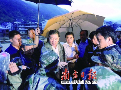 資料圖片:圖為中秋節汪洋、黃華華在受災最嚴重的茂名高州市馬貴鎮搶險一線部署救援工作。南方日報記者高笑攝