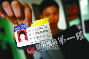 余嘉明打工時候的工作證 記者 錢波 攝