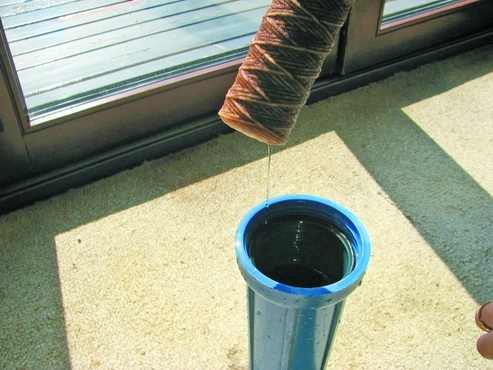 “這水簡(jiǎn)直不能用,所以我們裝了凈水過(guò)濾器。”宋女士從家中的總水閥口拆下一個(gè)塑料裝置,這就是水質(zhì)過(guò)濾器。打開(kāi)過(guò)濾器,吳華抽出了一根已經(jīng)變成黃褐色的過(guò)濾棒。“我們這里幾乎家家戶戶都安裝了這種過(guò)濾器,這種過(guò)濾棒原本是白色的,新?lián)Q的不到一周時(shí)間就變成這樣了。”