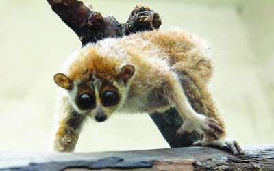 10月30日晚,常州市民程先生無意中在小區樓道里逮到了一只小動物,出乎他意料的是,經過動物專家鑒定,這只小動物竟然是國家一級瀕危保護動物:懶猴,全國僅有百只左右,珍貴程度不亞于大熊貓。至于這只貴客在常州出現的原因,專家分析認為,可能是有人非法購得將其帶來常州,無意中懶猴逃跑。這只懶猴目前被常州動物園收養。