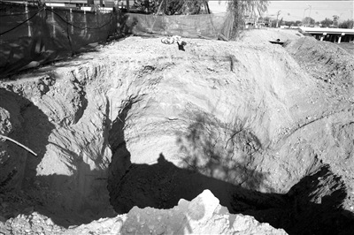 昨天凌晨兩點左右,還在工棚里熟睡的老李被一陣急促的敲門聲驚醒!俺鍪铝,工地塌方啦,趕緊救人!”工友大聲呼救,老李和其他工友一起快速穿上衣服,拿起鐵鍬往工地沖去。老李說,他跑到工地發現,緊挨著樂園莊橋的一口豎井旁,約有10多平米的塌陷。此時,有人大喊:“下面埋了3個人,趕緊救人!”