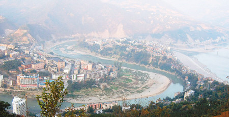 旬陽(yáng)縣城被旬河分割成類似太極圖案的形狀