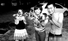 伸出血淋淋的雙手,他們還在做鬼臉 (圖片來源:鄭州晚報)