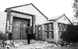 11月11日,北京大興區(qū)大洼村,王飛亮在六叔王玉崗生前居住的院子門前徘徊。本報記者 楊杰 攝