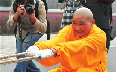 昨天上午10點,在北京門頭溝區(qū)潭柘寺前,6輛以繩索相連、總重量約9噸的汽車被一個人徒手拉動了15米,引來游客陣陣掌聲。這名拉動6車的大力士并非威猛大漢,而是一名已年過半百的女僧人,這更是讓觀眾連連稱奇。