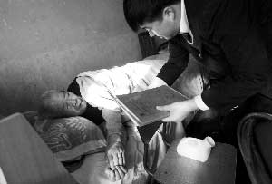 由于原告朱海洋因身體情況不能出庭,昨日上午,主審法官趕到老人家探望,并了解起訴書的內容。攝影/記者 王貴彬
