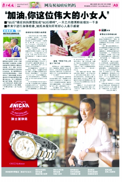 揚(yáng)子晚報(bào)關(guān)于“癌癥媽媽”報(bào)道的部分版面