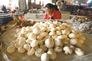昨日(7日),沙坪壩區新橋農貿市場,一攤販銷售的蘑菇雪白光滑。資料圖