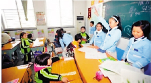 “少兒政府”的副市長(zhǎng)和兩位局長(zhǎng)在教室里檢查紀(jì)律
