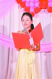 欣雨:“男主持人我喜歡朱軍的風(fēng)格,女主持人我喜歡董卿。我相信,將來我的主持風(fēng)格肯定會(huì)超越董卿阿姨。” (記者孫華)