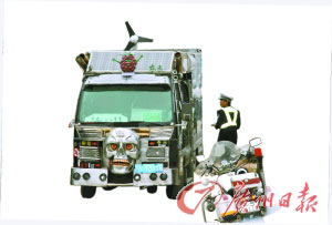 來(lái)自湖南、在虎門(mén)經(jīng)商的新莞人楊祖湘為了向大家宣傳低碳環(huán)保及毒品、醉酒駕車(chē)等危害,花了30多萬(wàn)元將一輛五十鈴人貨車(chē)改裝成了一輛“農(nóng)民悍馬”進(jìn)行公益宣傳活動(dòng)。昨天下午1時(shí)40分許,當(dāng)其駕駛他的“農(nóng)民悍馬”途經(jīng)東莞常平鎮(zhèn)松柏塘?xí)r遭交警查扣,理由是“大規(guī)模改裝車(chē)輛不得上路”。