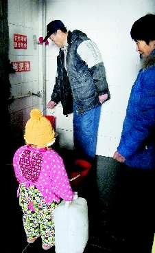 “沒辦法,家里沒水,只能去輕紡城一樓的衛(wèi)生間里打水。”87歲的耿老太顫巍巍地提著裝滿水的水桶,無奈地說道。居民向記者介紹,健民路宿舍共有136戶居民,今年供暖開始后,居民們突然發(fā)現(xiàn),家里的自來水變成了熱水,最高溫能達(dá)到50℃,一周前干脆停水了。