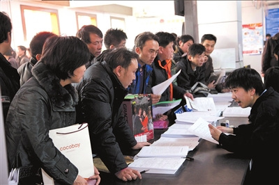 昨天,眾多市民到北京車管所京北分所辦理新車牌照。實習記者趙恩澤攝