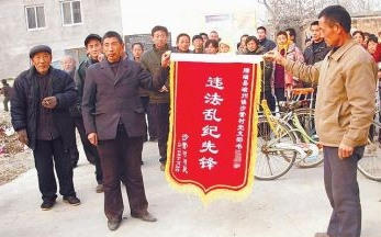 村民送違法亂紀(jì)先鋒錦旗給村支書(資料圖 圖片來源:中國廣播網(wǎng))