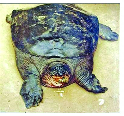 一個多月前,在江蘇興化做甲魚生意的房增祥,收購到一只84斤重的特大甲魚。興化市旅游局得知消息后,以15萬的高價從房增祥手中購得,準備放置在當地烏巾蕩濕地公園飼養,增加該景點的“看點”。然而不幸的是,大甲魚一周后死亡。本報曾分別于11月25日、12月3日以《這個大甲魚大得不像話》、《84斤大甲魚死了?》為題專門進行報道。