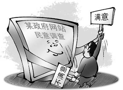 據(jù)《武漢晚報(bào)》不久前報(bào)道,在吉林省永吉縣人民政府網(wǎng)所做的關(guān)于“滿意度”的民意調(diào)查中,只有兩個(gè)選項(xiàng):滿意和非常滿意。漫畫:陶小莫