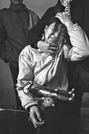 28日,墜河事故中遇難的王磊的母親悲痛不已。郭國權 攝